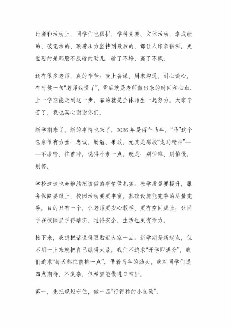 骏马奔腾启新程!2026春季开学典礼上,校长这段话振奋全场子渊10小时前发布关注私信0206 ——预览已结束,还剩4页未读——开通会员后可免费下载高清完整文档 骏马奔腾启新程!2026春季开学典礼上,校长这段话振奋全场此内容为付费资源,请付费后查看¥19.9¥999普通会员免费超级会员免费立即购买您当前未登录!建议登陆后购买,可保存购买订单格式docx页数6 页大小14.72 KB付费资源© 版权声明文章版权归作者所有,未经允许请勿转载。THE END管理相关 喜欢就支持一下吧点赞6 分享QQ空间微博QQ好友海报分享复制链接收藏