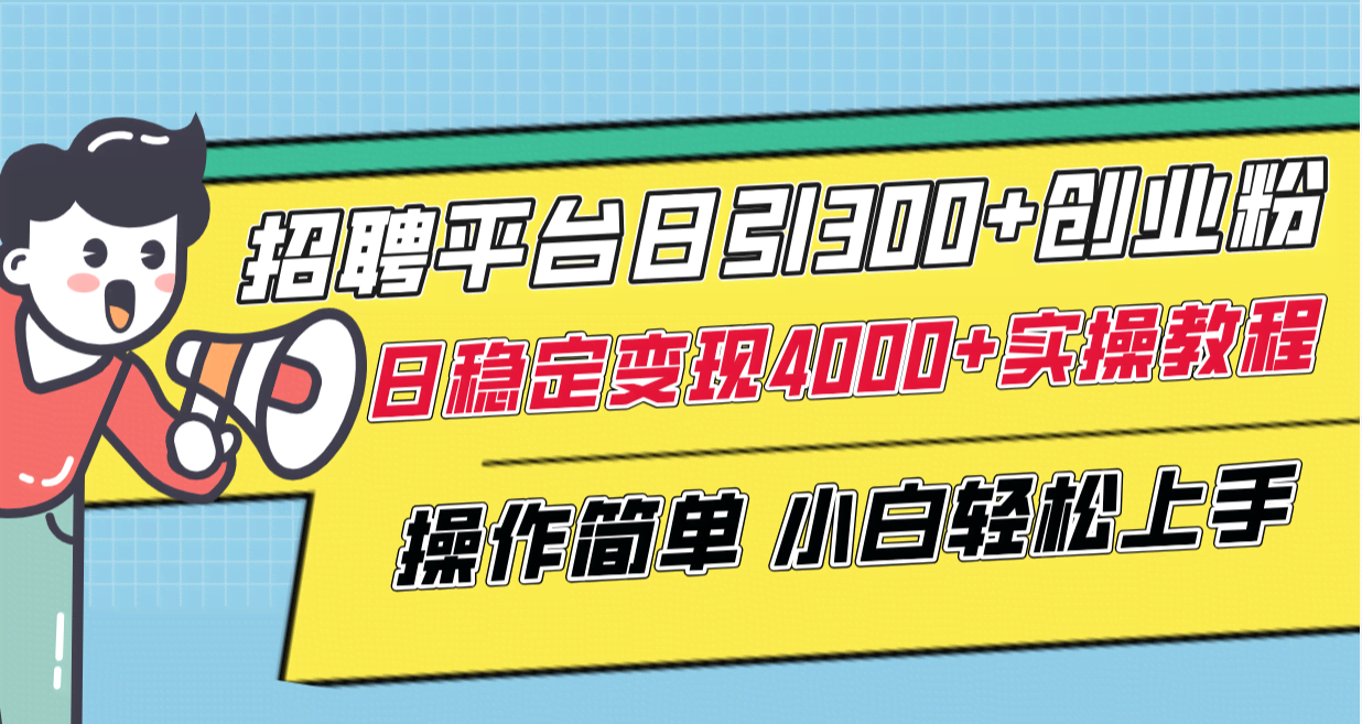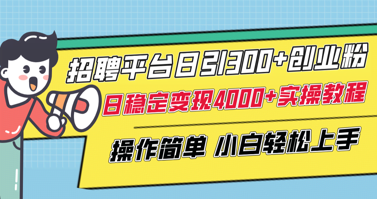 (8088期)招聘平台日引300+创业粉,日稳定变现4000+实操教程小白轻松上手!